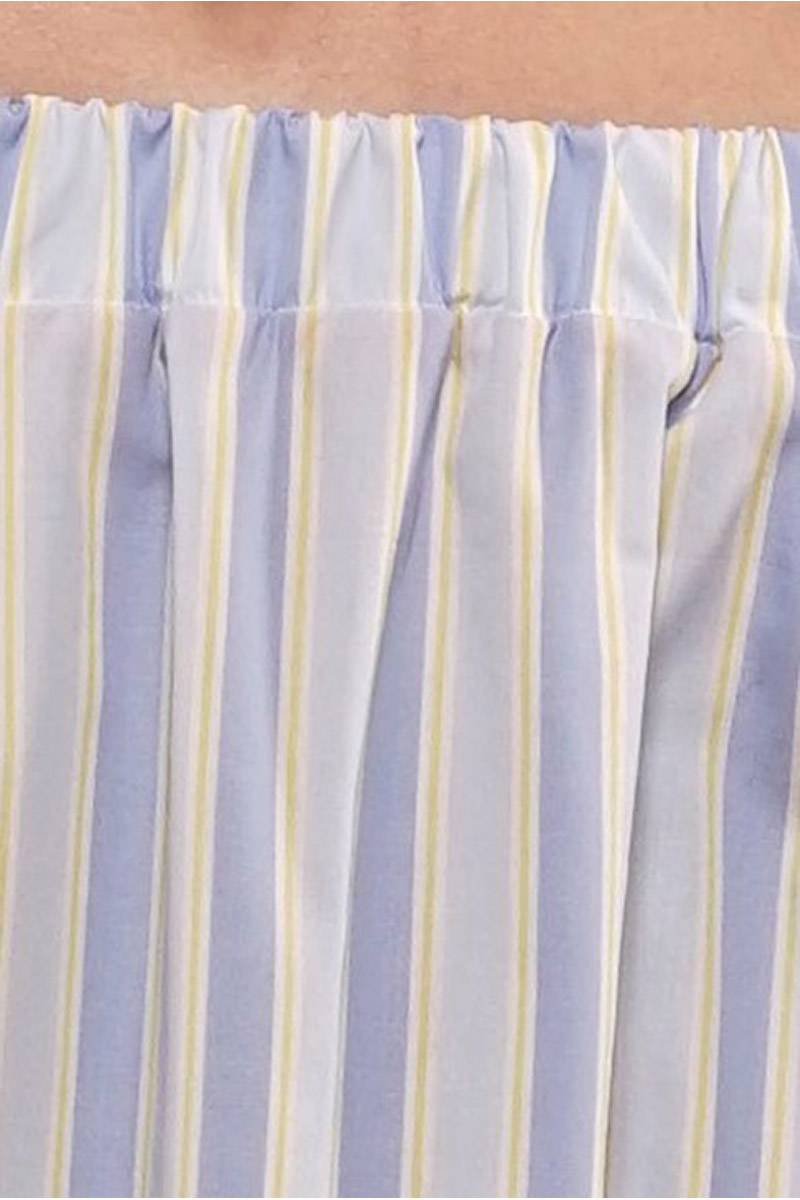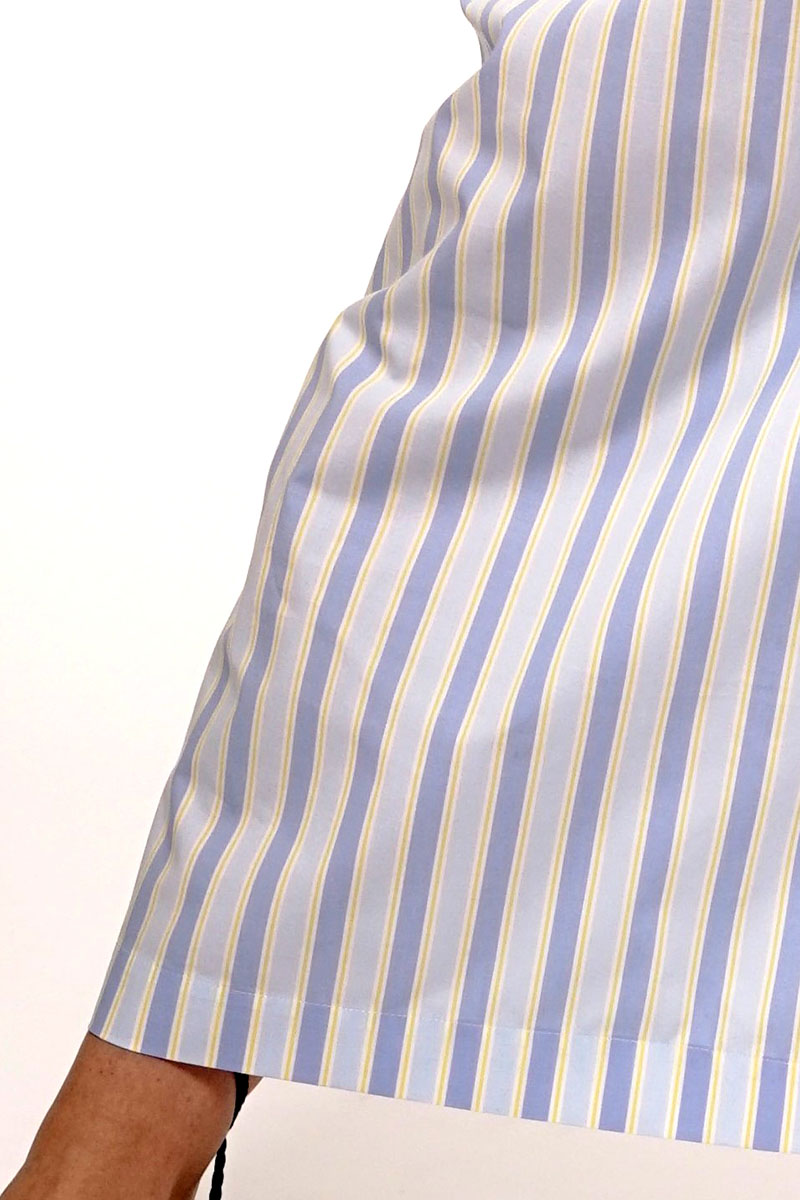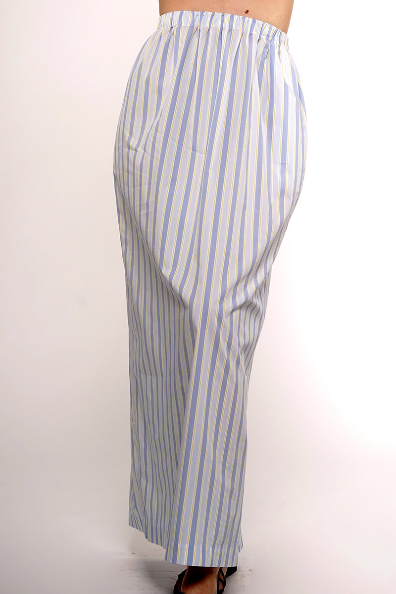 La fantasia a righe tenui delle classiche camicie da uomo dona leggerezza alla gonna lunga in morbido popeline di cotone con profondo spacco posteriore e tasche laterali nelle cuciture.