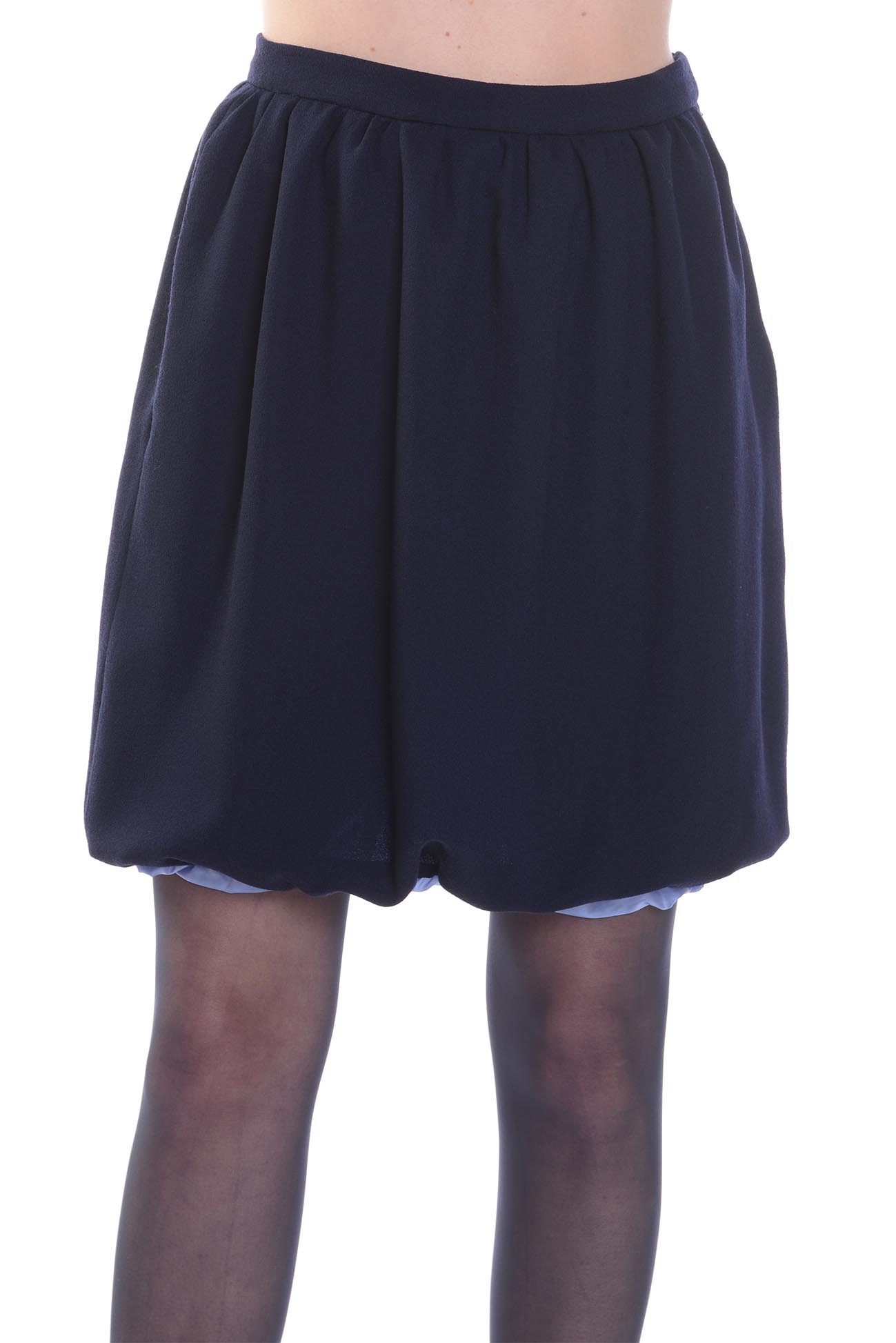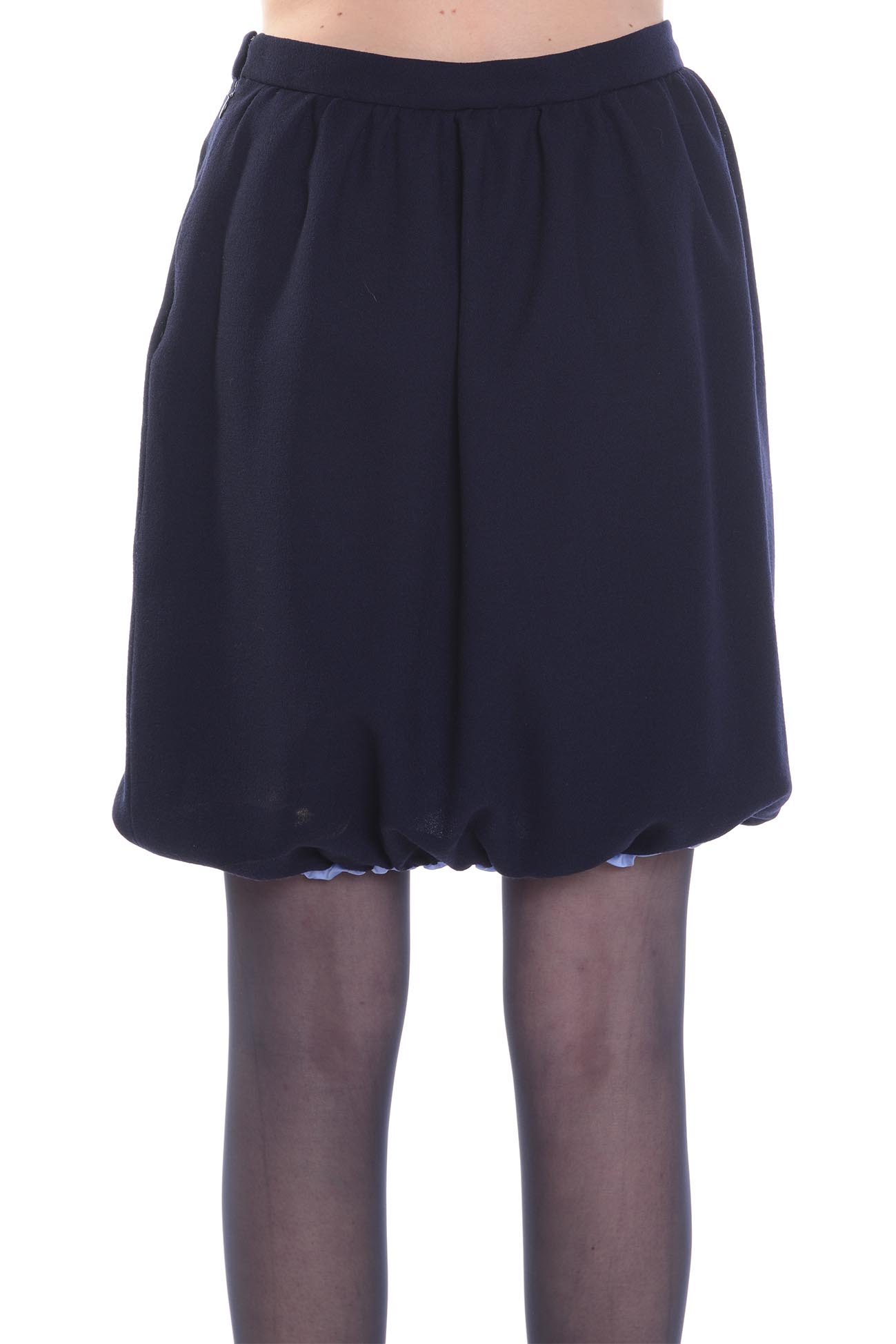 La gonna a palloncino in crepe di lana blu notte presenta una fodera a contrasto in misto cupro e seta celeste.
